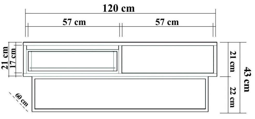 Тип: журнальный столик / Высота, см: 43 / Длина, см: 120 / Ширина, см: 60