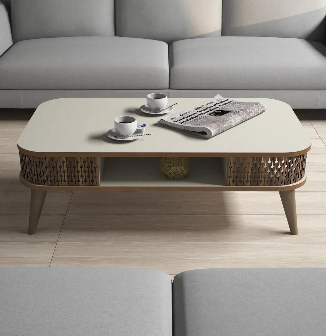 Журнальный столик Trendy Эйлюль, кремовый 105x34x60 см