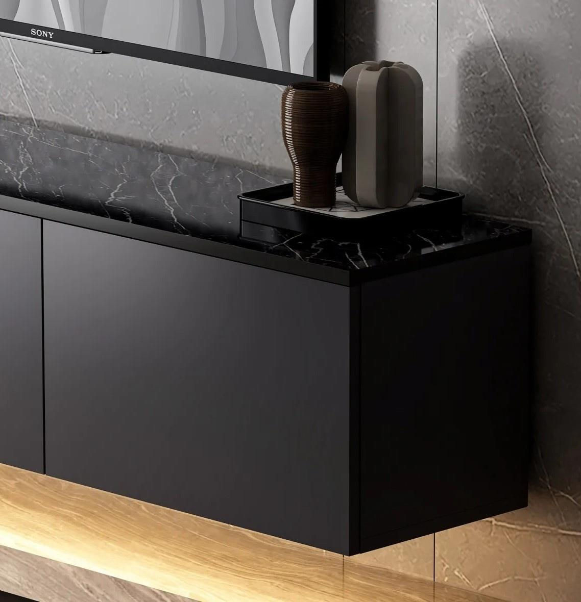 Эта тумба под телевизор легко крепится к стене, обеспечивая дополнительную устойчивость и безопасность. Независимо от того, маленькая у вас квартира или просторная гостиная, эта универсальная тумба адаптируется к вашим потребностям. Ее компактные размеры — 160 см в ширину, 35 см в высоту и 32 см в глубину — делают ее подходящей для любого помещения.