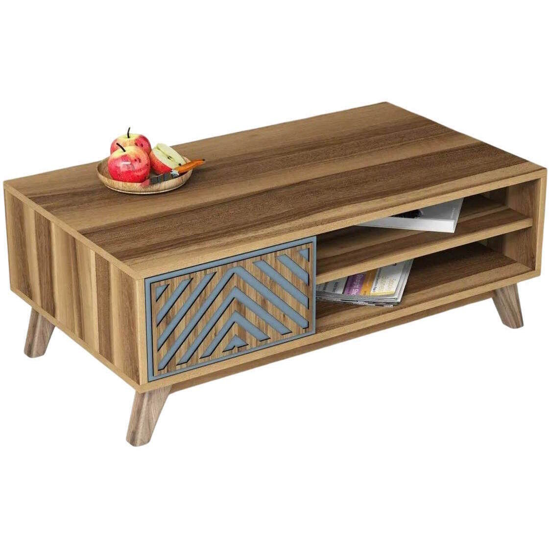 Журнальный столик Trendy Инчи, орех, синий 105x38x60 см