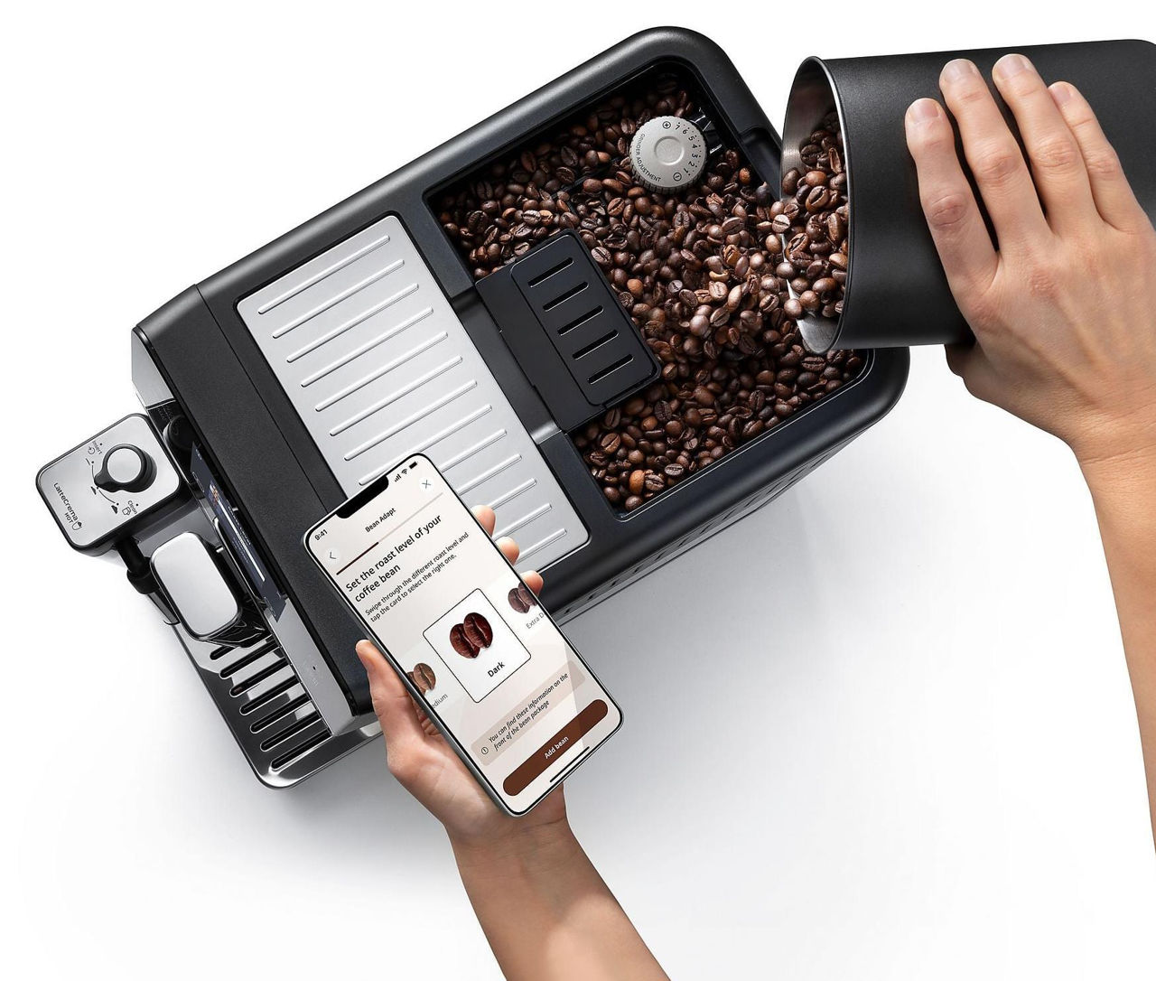 Используемый кофе: в зёрнах / Тип капучинатора: автоматический / Давление, бар: 19 / Объём резервуара для зерен, г: 500