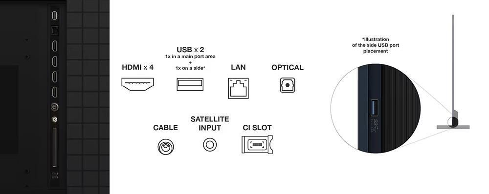 - Интерфейсы проводные CI Slot,HDMI,LAN (Ethernet),S/PDIF,USB