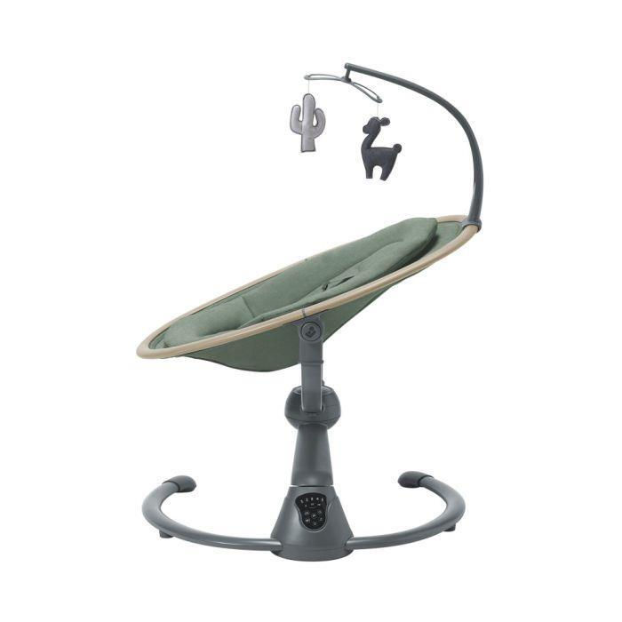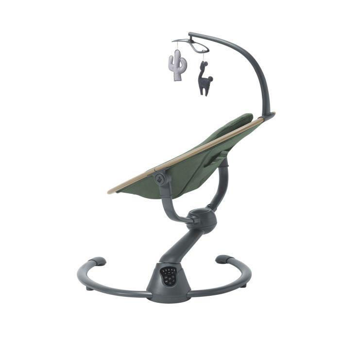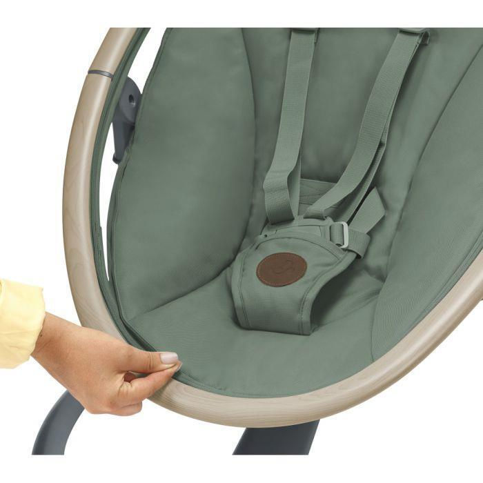 Комфорт обеспечивается мягкими комфортными тканями, а стильный цвет Beyond Green органично вписывается в интерьер детской комнаты. Регулировка параметров проводится легко с помощью интуитивного управления — можно выбрать уровень скорости покачивания, громкость звуков и включить/отключить вибрации.