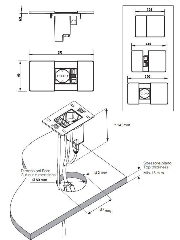 - Модель 060.08F.00065 Versapad 1 socket F +1 USB 5V (A) + 1 USB 5V (C) Stainless steel