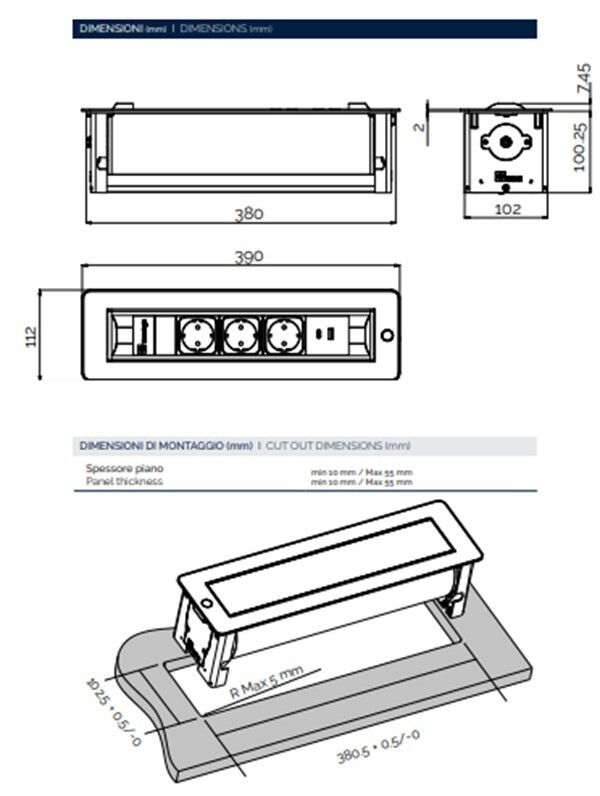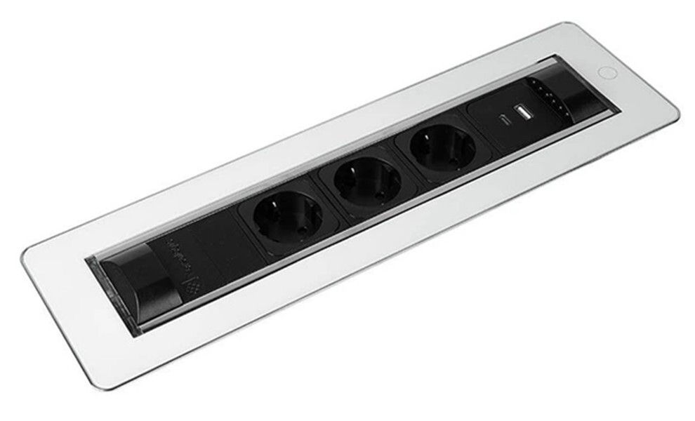 - Модель 060.24F.00032 Versaturn 3.0 3 sockets F+ 1 USB 5V(A+C) White glass
