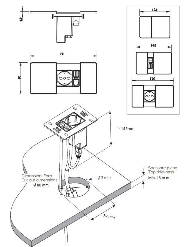 - Модель 060.08F.00108 Versapad 1 socket F + 1 USB 5V (A) + 1 USB 5V (C) White