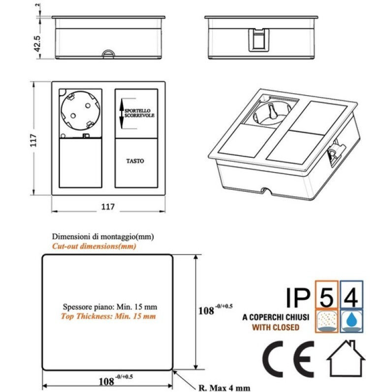 Розетка электрическая ASA Plastici 060.15F.00001 Versahit dual 2 sockets F Stainless steel
