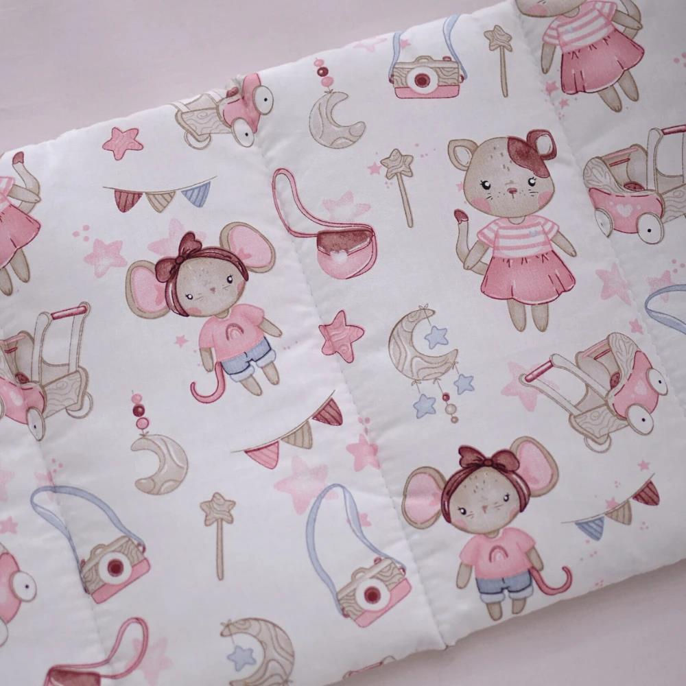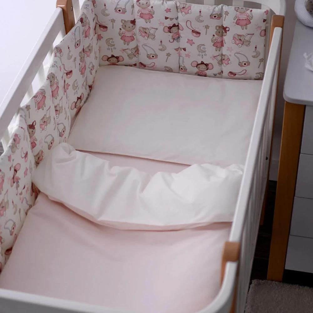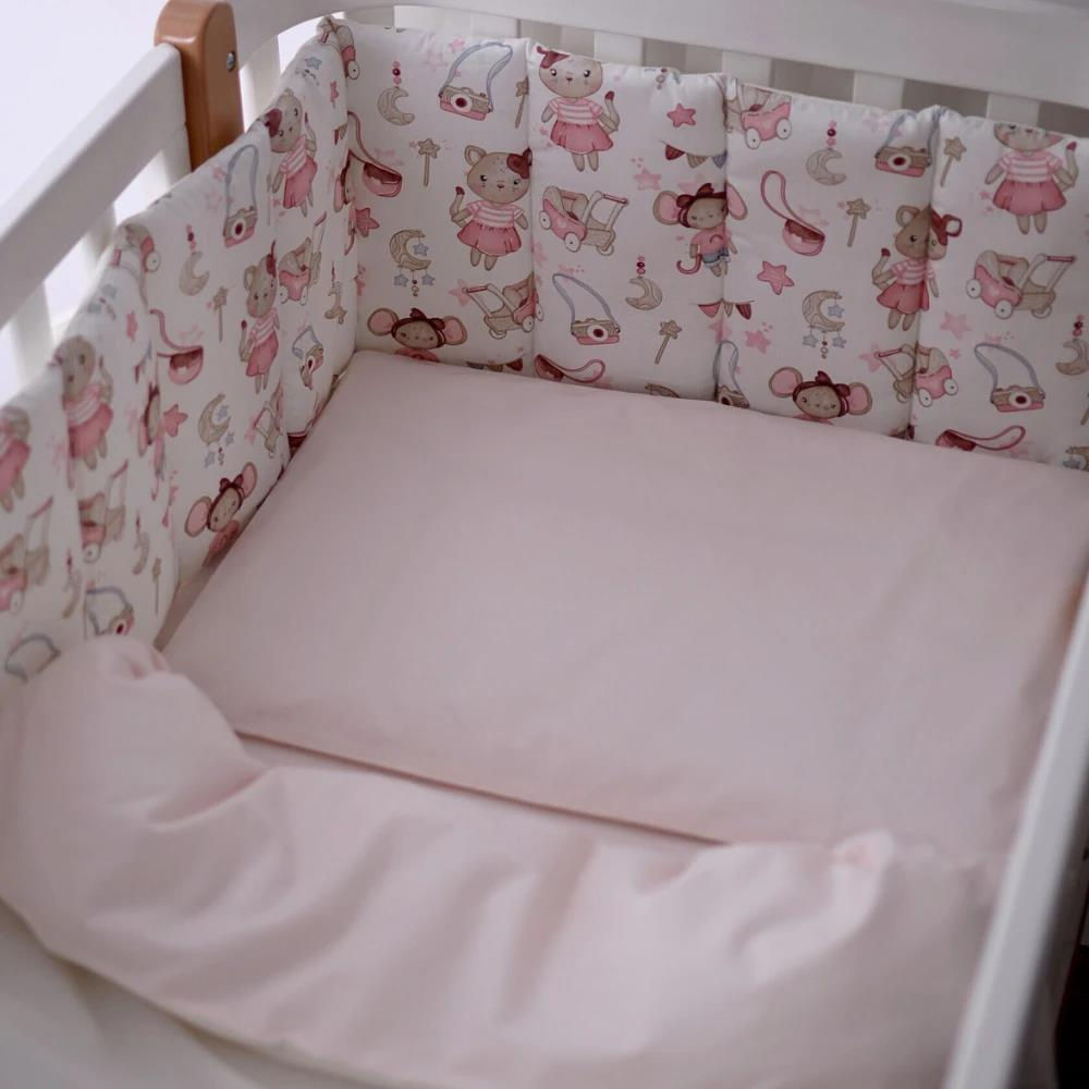Представьте, как ваш малыш просыпается в окружении добрых друзей. Очаровательные мышки в платьицах и милые котята с игрушками — этот принт создан, чтобы дарить спокойствие и радость. Нежные розовые и пудровые оттенки в сочетании с качественными тканями превращают детскую кроватку в настоящий островок уюта и безопасности.