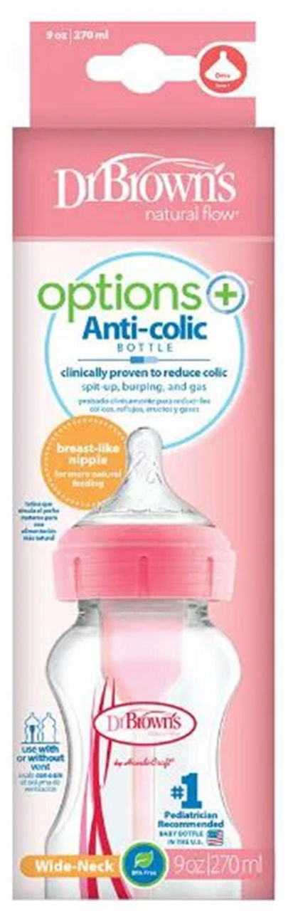 Поильник Dr. Brown's 072239318218 Biberon cu gat larg Options+ Roz, tetina nivel 1 (0-3 luni), 270ml