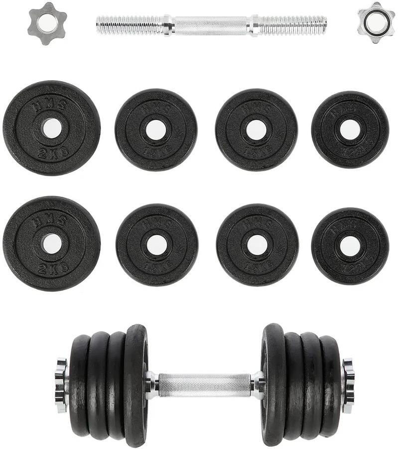 Тип: гантель наборная / Количество блинов, шт.: 8 / Количество гантелей в комплекте, шт.: 1 / Материал грифа: металл
