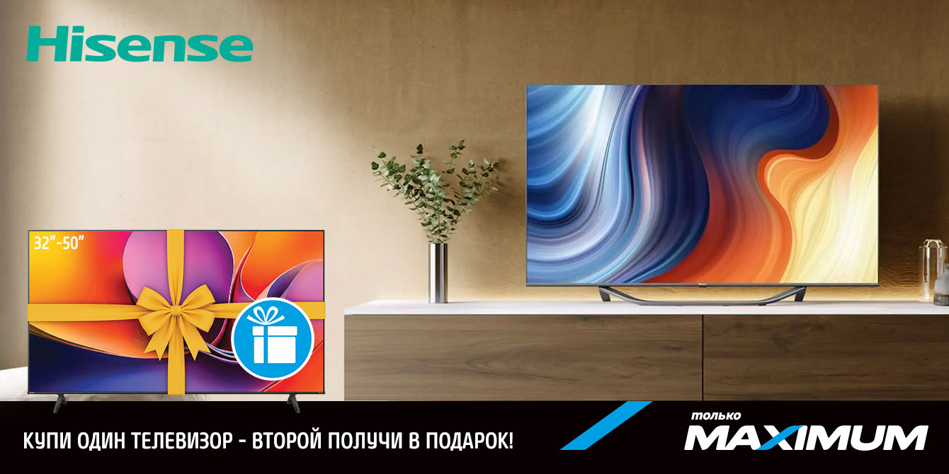 С 02 февраля 2025 года по 22 февраля 2026 года действует подарочная акция от Hisense — покупайте телевизор и получайте второй ТВ в подарок!