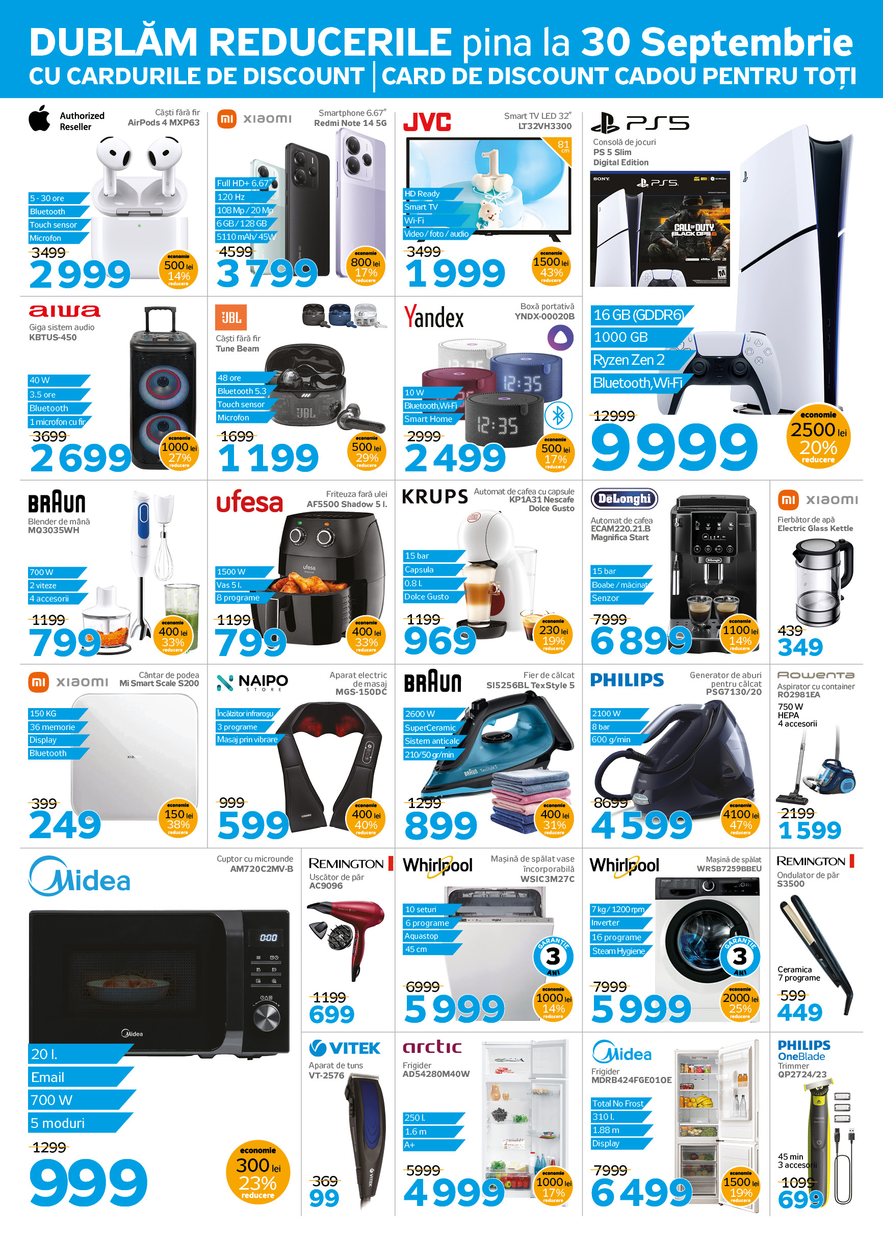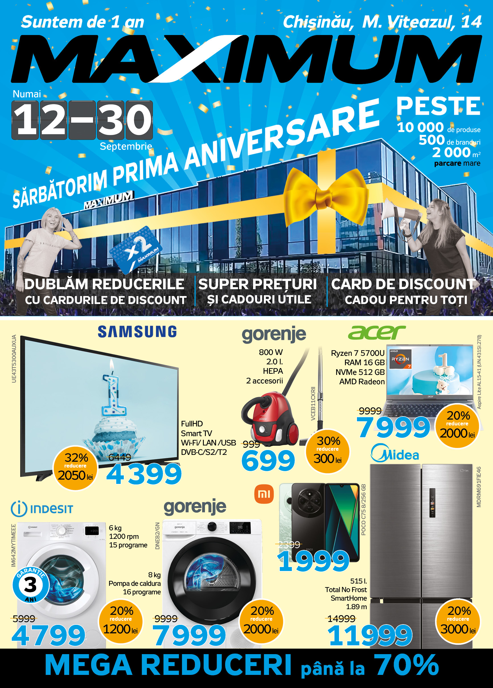 📅 С 12 по 30 сентября в Maximum на улице Михай Витязул 14 действуют скидки до 70% на сотни товаров. А ещё удваиваем скидки по дисконтным картам на широкий выбор продукции, которая не участвует в акциях. Это отличный шанс приобрести желанную технику по самым выгодным ценам!