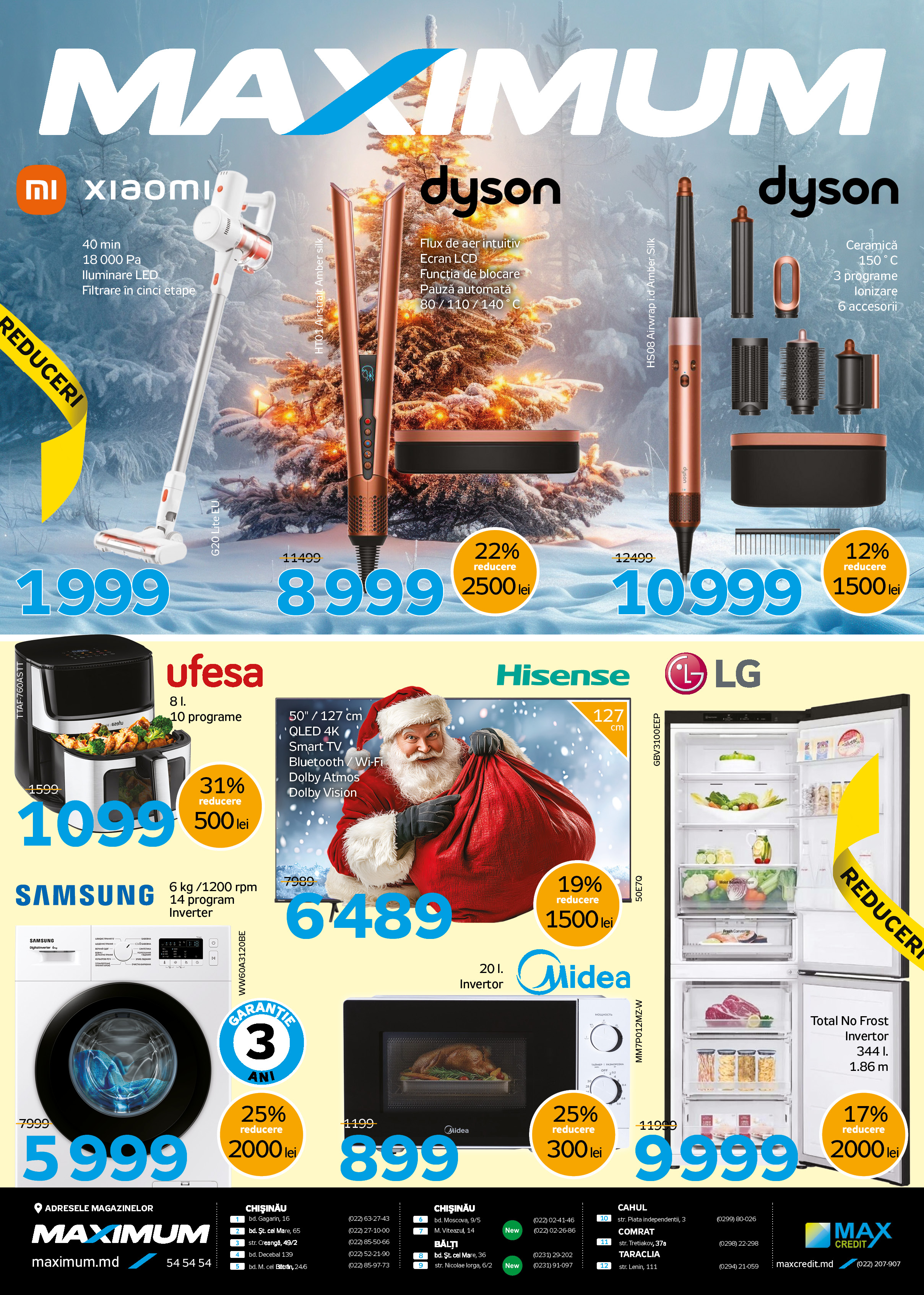 🎉 Встречайте праздники на максимум! Спешите — количество товаров по супер-ценам ограничено! Заходите в магазины или покупай онлайн на maximum.md и получайте максимум выгоды. Оформляйте заказ онлайн, а мы доставим его в любую точку Молдовы прямо к вашему порогу.