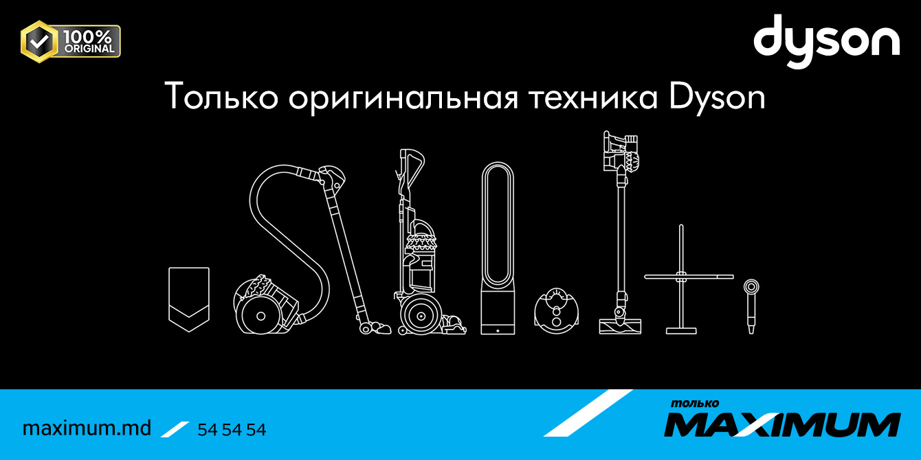 • Сегодня официальная продукция Dyson, поступающая в MAXIMUM — предназначается для региональных рынков Румынии и Молдовы